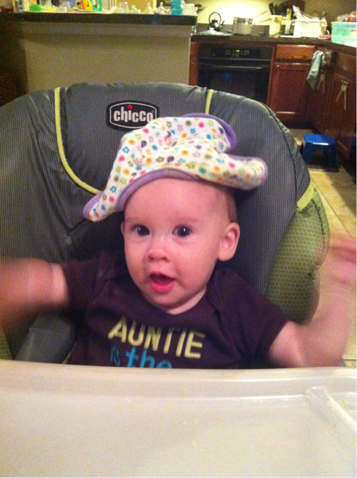 Silly girl landed her bib on her head accidentally but this look sure seems like it was intentionally for a good laugh.