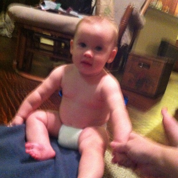 Miss thang has figured out how to push up to sitting from her belly. Now if she could just sit up on her own. (Taken with Instagram)
