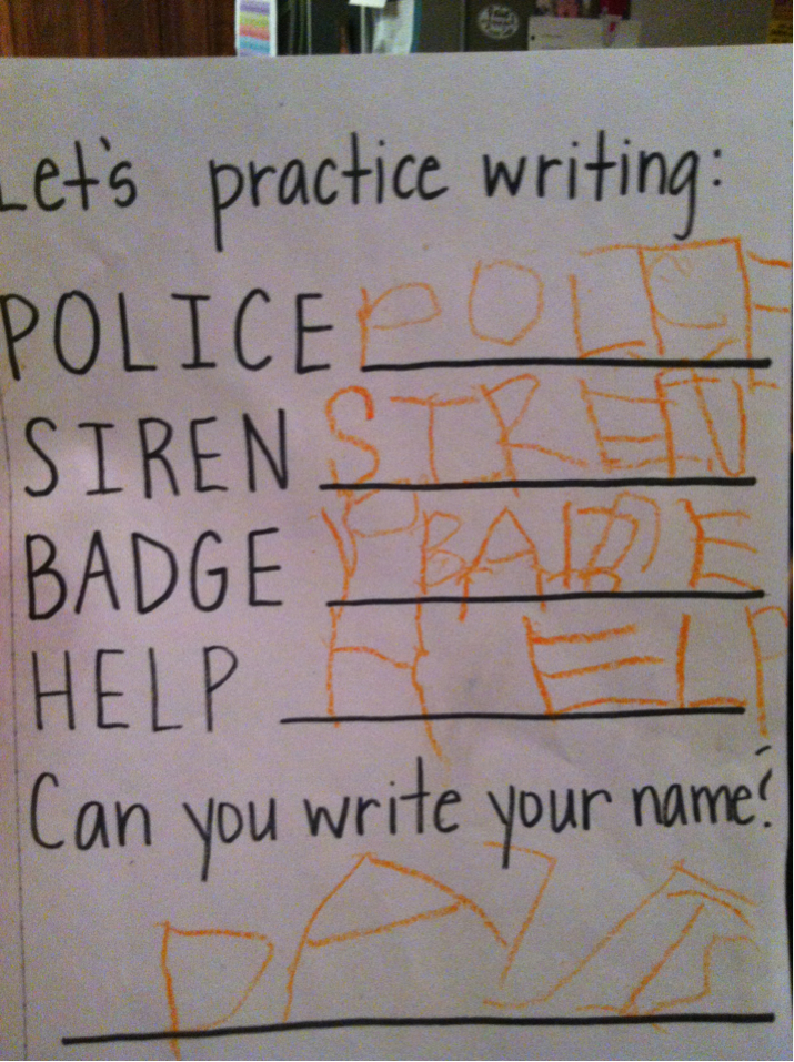 My little man likes writing! May not look like much, but he has gone from writing all over the page with no concept of the order letters go in, to wanting to start over because he accidentally went over the line with the H. Not even 4 and a half… And he is so proud of himself.