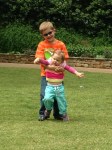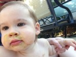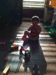 Super fun weekend now that it’s warm. We ended Sunday with a little Babyzilla busting out of the prison gates and into Lego Town, successfully destroying the Volunteer Fire Station. R and I worked on our Van Gogh-inspired finger painting. We spent the morning at the park where D showed R how to hang like a monkey, then showed her the big fish he is going to catch some day. Davis even got to drive R down the street Slow Ride-style in his souped-up jeep.