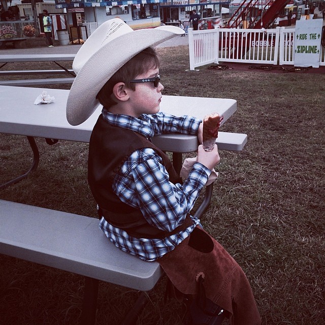 A full day at the Austin rodeo w/ N & P! No doubt he is “gesausted” and spoiled. #newhat #corndog #countryboy