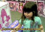 Girl: Because the companies who make these try to trick the girls into buying the pink stuff instead of stuff boys want to buy. [x]that awkward moment when a child understands the harm of forcing gender roles better than most grown male politicians.