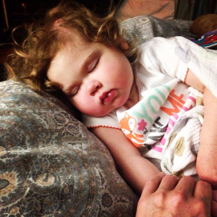 And the guilt kicks in. I’ve held her down and let them do terrible things to her. Of course she can sleep wherever she wants! Can’t deny her snuggles with mom and dad, now can I?!!!!