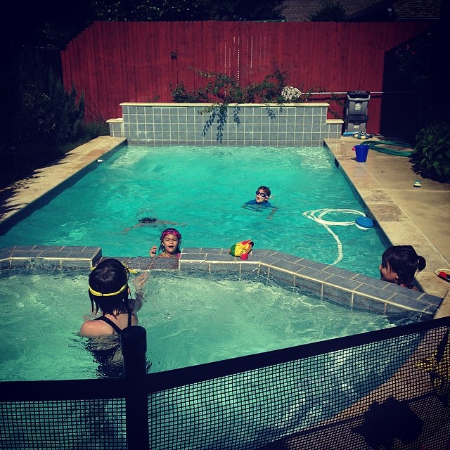 Love having a pool full of little people. Such good friends, to watch my sleeping baby so I can go get the big guy. #summ#summertime #
