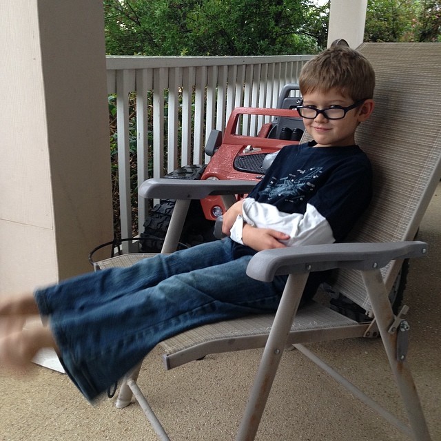 Enjoying the rain on the porch. Boy was so cold he put long sleeves and pants on #SummerRain